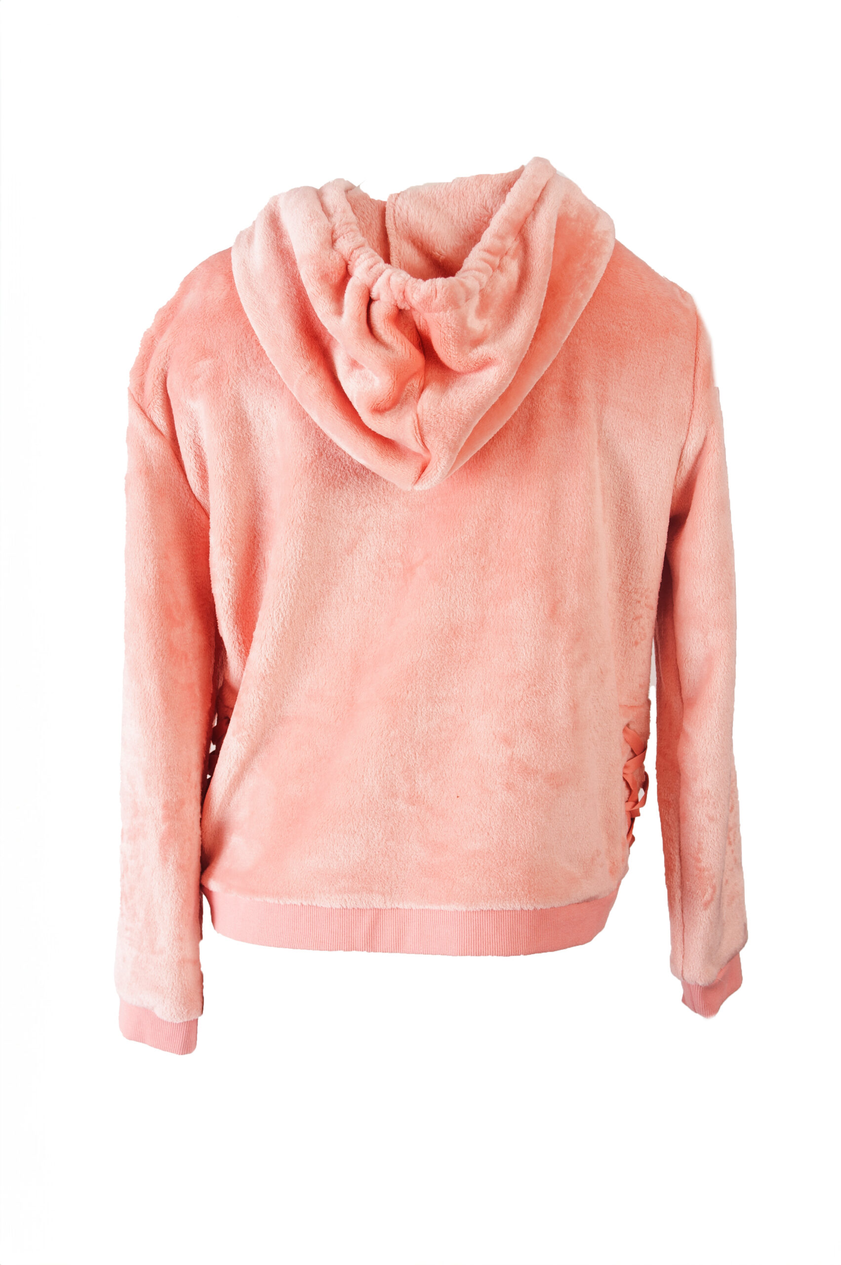 Bluza futerko z ozdobnymi wiązaniami na biodrach w kolorze różowym.