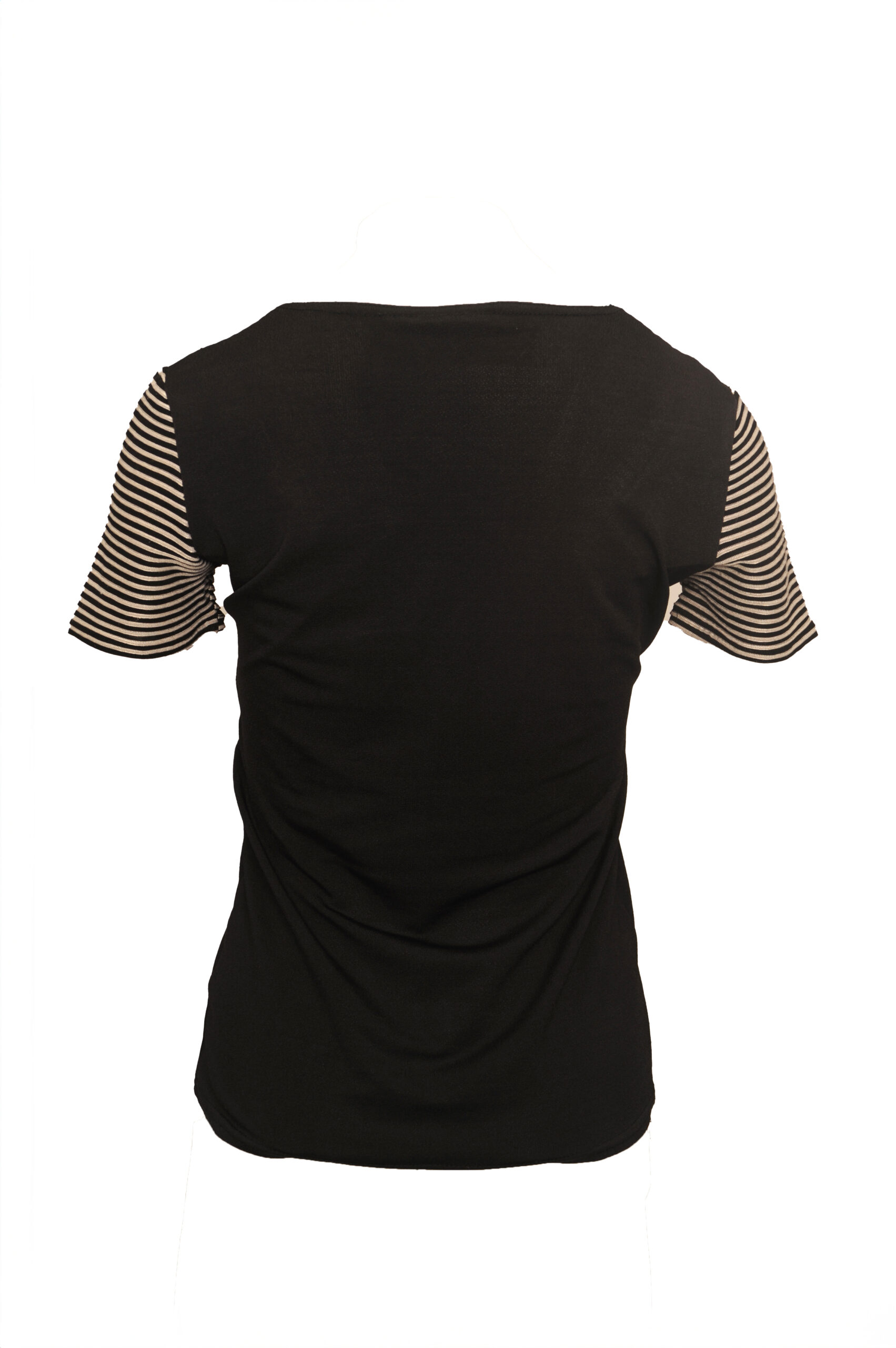 Bluzka z krótkim rękawem z dekoltem w literkę V oraz elementami w czarno- białe paski.