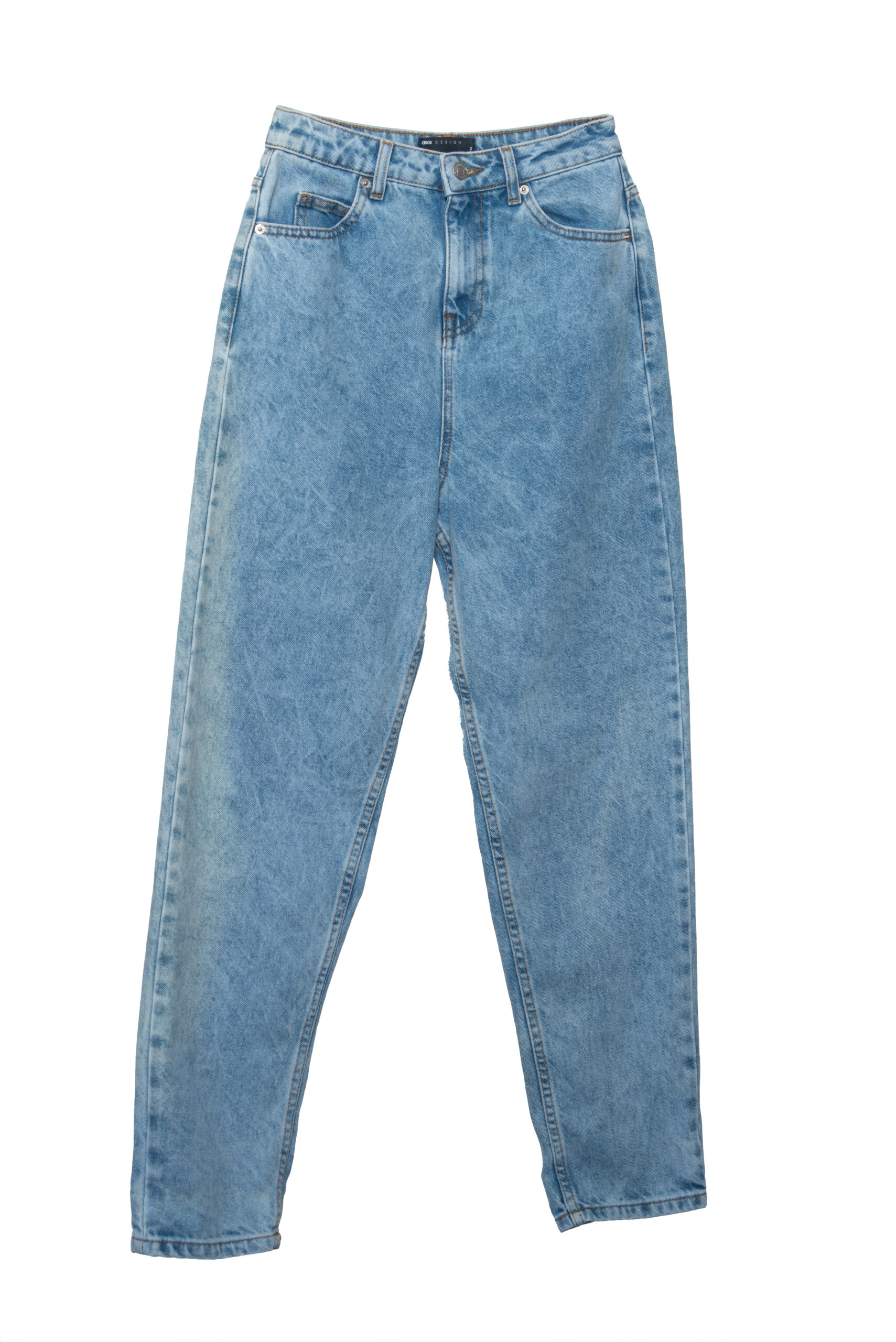 Jeansy z wysokim stanem zwężane do dołu w kolorze jasno niebieskim.