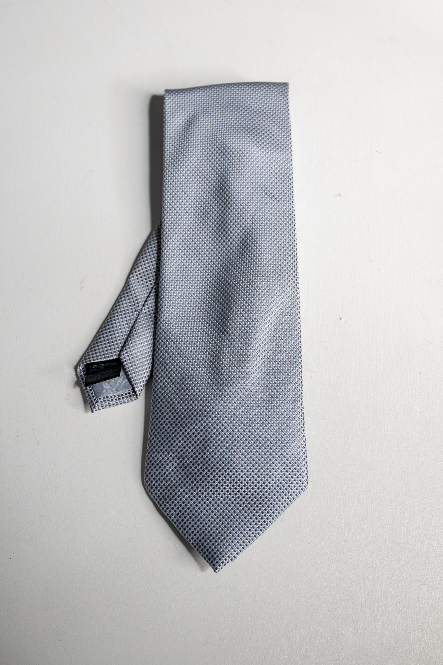 Krawat w delikatny wzór w kolorze błękitnym.